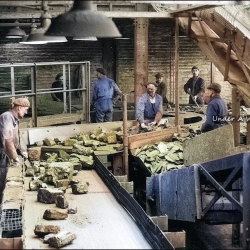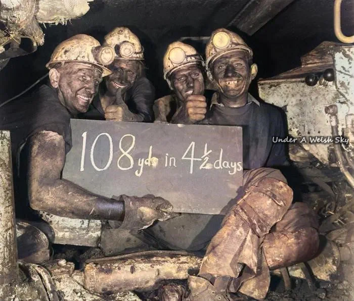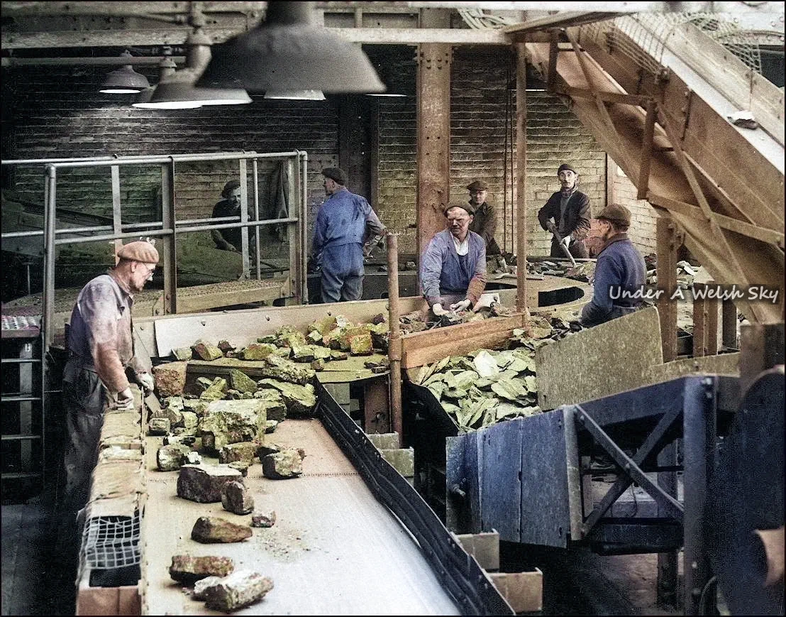 By 1908 there were 848 men working at the colliery and the local communities of Rhostyllen, Rhosllannerchrugog and Johnstown grew dramatically in size to support the coal industry in the area. Until mechanisation appearing in the mine in 1935, mining at the colliery was done by hand.