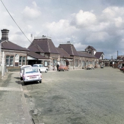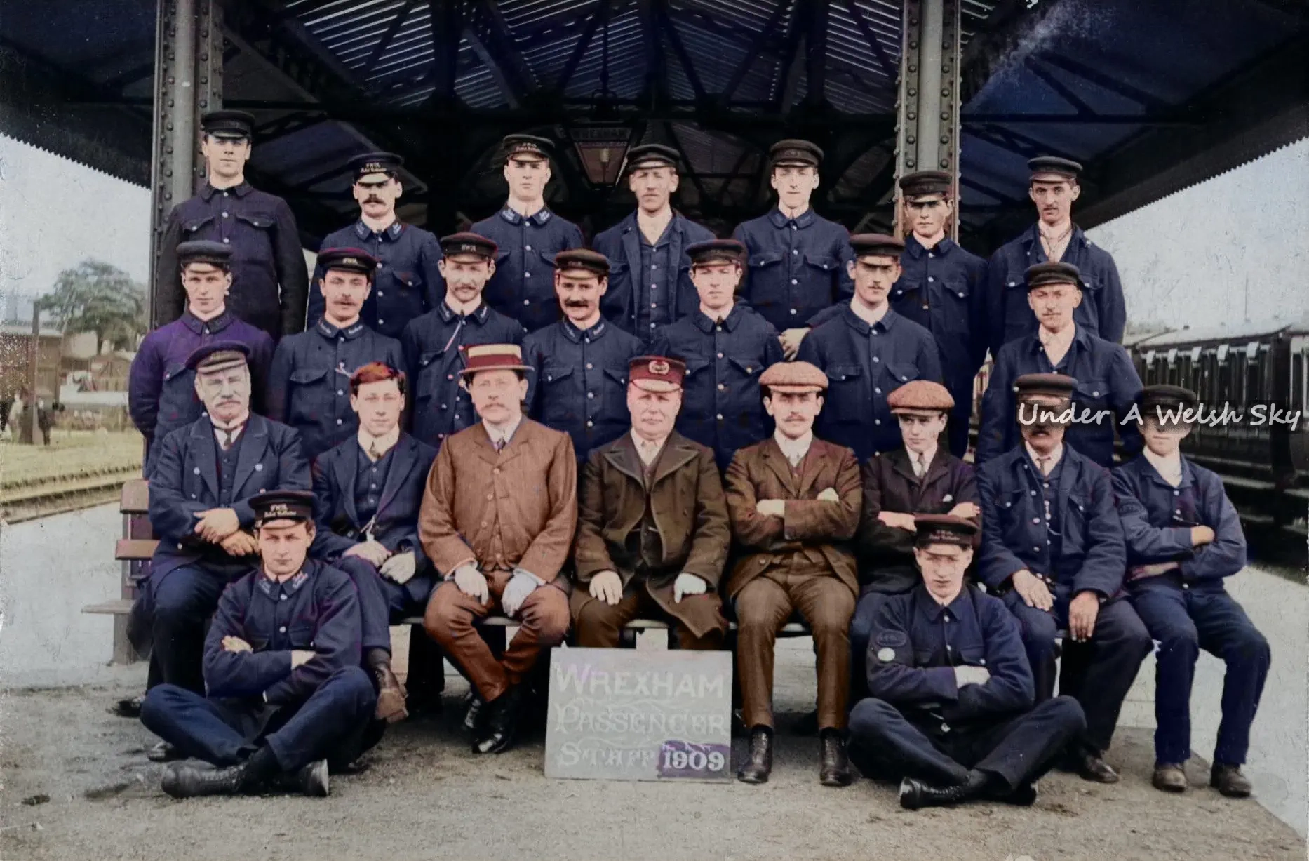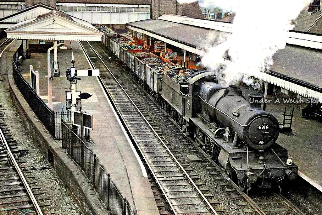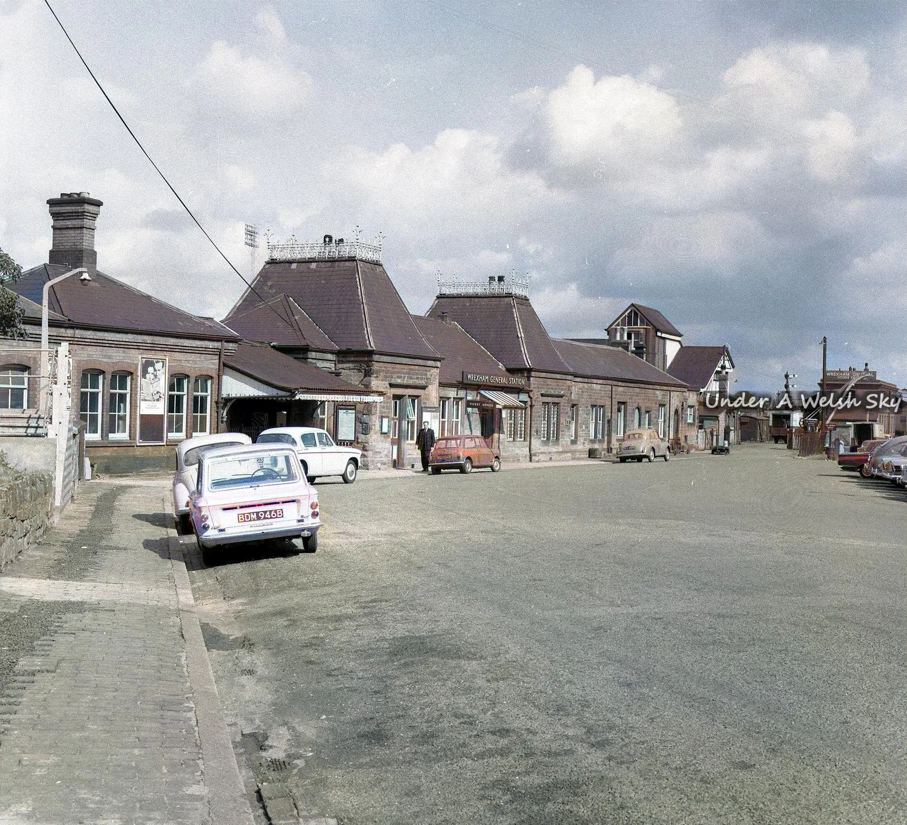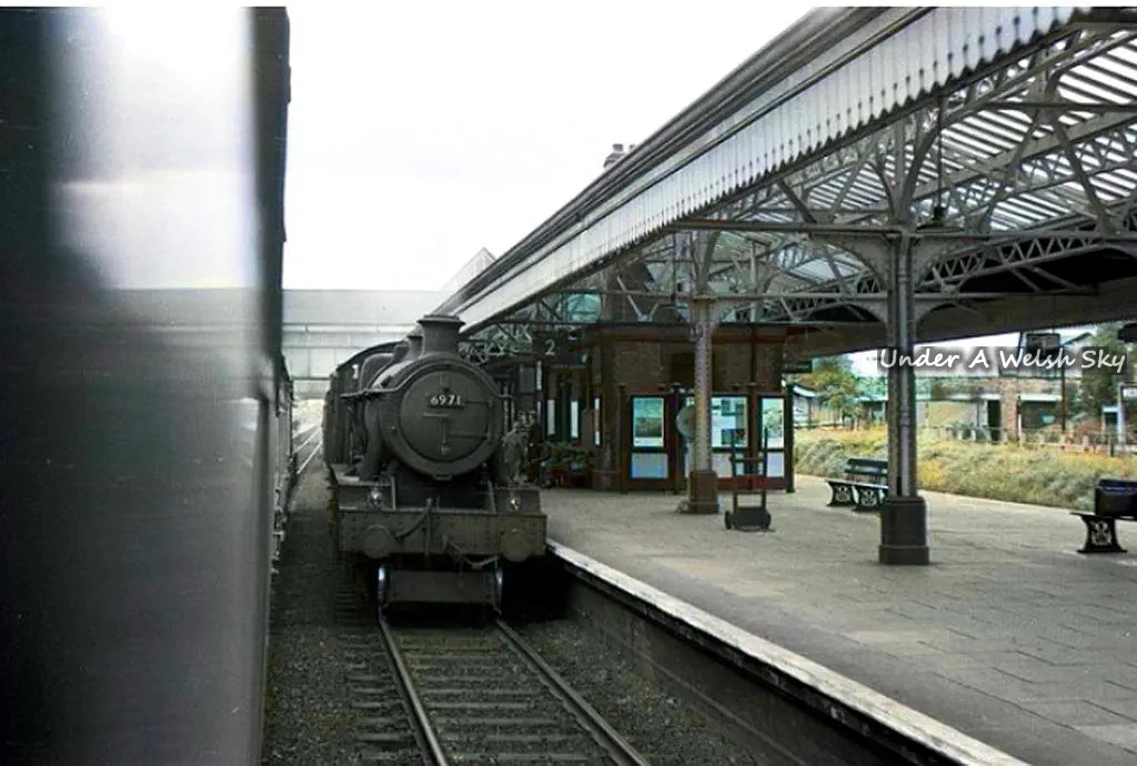 The North Wales Mineral Railway was first to set up in 1844 to create a railway between Chester and Ruabon. Eventually this line passed to the Great Western Railway, which named the station Wrexham General and rebuilt it from 1909 to 1912. The distinctive shape of the station building’s roof – which you can look down on from the road bridge across the tracks – was a feature of GWR stations of that period.